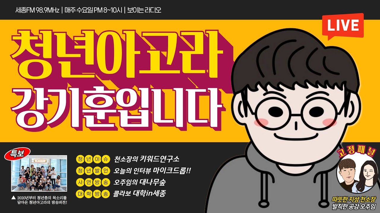 #청년아고라 #강기훈입니다 #세종FM #세종에프엠 #키워드연구소 #폭룡적이다 #전업자녀 #너에게보내는노래 #자존감뿜뿜